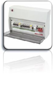 A consumer unit is a modern replacement for a fuse board. In place of the fuse wire that burns out the consumer unit has electro-mechanical trip devices, miniature circuit breakers (MCB’s) and residual circuit devices (RCD’s). These are available in a range of ratings appropriate for different types of circuits and installations. If these trip they can be easily re-set. The Consumer Unit is the heart of your homes electrical installation, it is the core of your electrical system, electricity is distributed to various circuits around the home disappearing in to walls, ceilings under floors to feed lights, electrical sockets, outdoor lighting, heating etc
